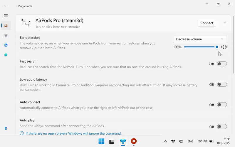 Requires MagicAAP driver installation and MagicPods version 2.0.72.0 and above.